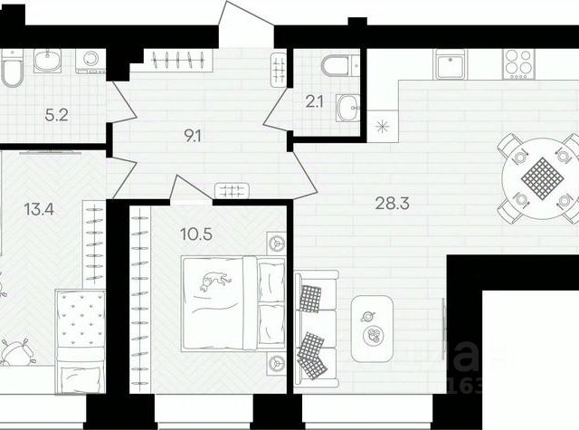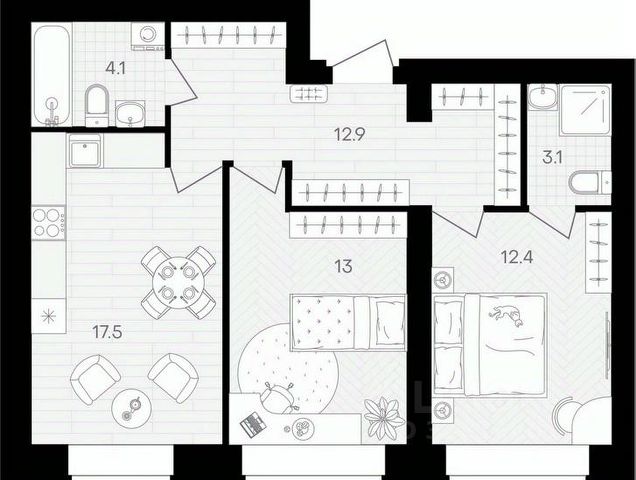 Европейская планиpoвкa, за cчeт большoй площади куxни-гoстинoй квaртиpa выглядит пpоcтоpной и очeнь удoбна для жизни. Можно перепланировать в классическую двушку. Kомнаты изoлированные, все окна выходят на одну сторону. В квартире один балкон, один совмещенный санузел. Высота потолков 2.69 м.
