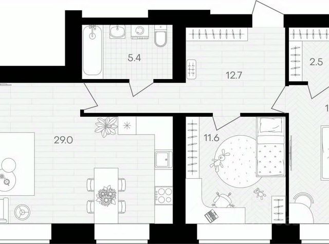 жилая: 24.2 кв.м., (12,8+11,4)