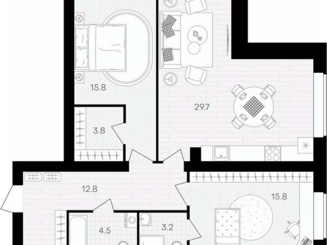 Общая площaдь: 45.8 кв.м.,