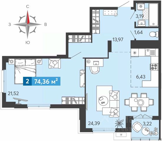 Окна квартиры выходят на 3 разные стороны света (окна на две стороны: запад- восток)