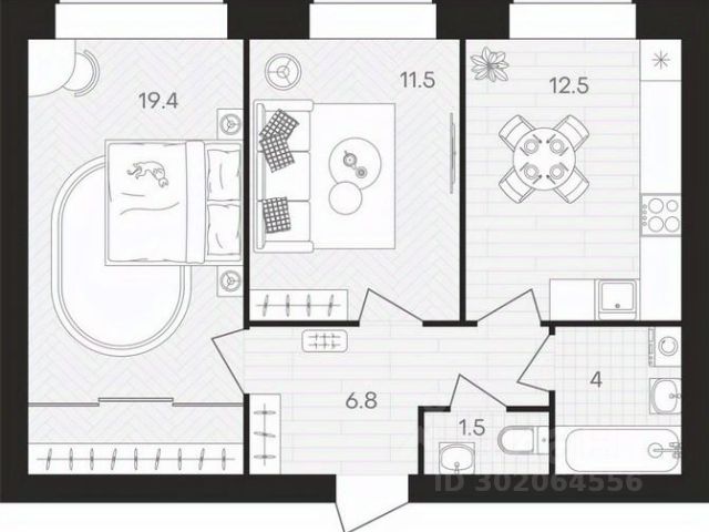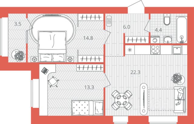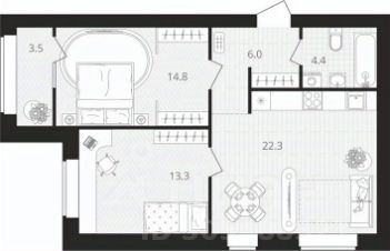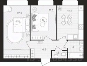 • ✅ Минимальная площадь: 54,3 м²