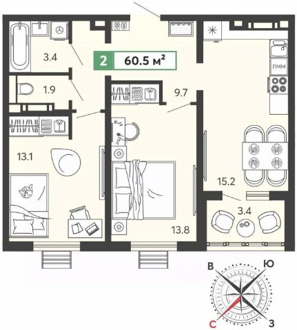 • ✅ Минимальная площадь: 44,1 м²