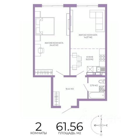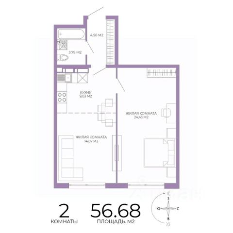 Арт. 118041128 Продается современная двухкомнатная квартира с изолированными комнатами и большой прихожей по ул. Ладожская 57.