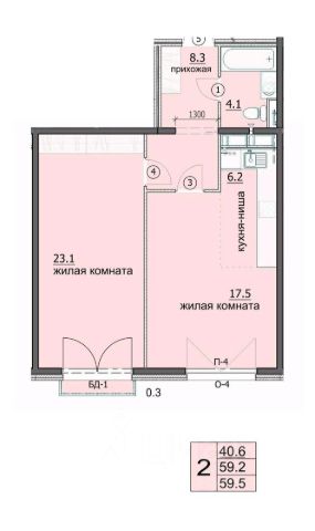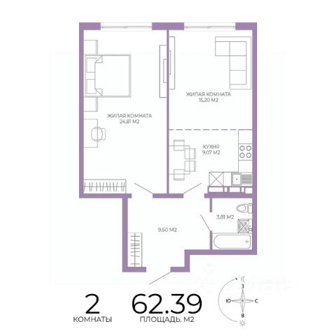 Общая площадь 54,1 кв.м.