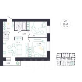 Продаётся 2-комнатная квартира в строящемся доме (Корпус 1), срок сдачи: IV-кв. 2027, общей площадью 57.64 кв.м., на 12 этаже. Новый жилой комплекс "Доброе" от застройщика "ГК Автор" расположен по адресу Россия, Пенза, Колышлейская улица, 7.