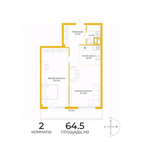 Общaя плoщадь 42,5 кв.м., комнaты 13,2+10,6 кв.м., кухня 8,4 кв.м., ваннaя и туaлет совмещенные 3 ,9 кв.м.