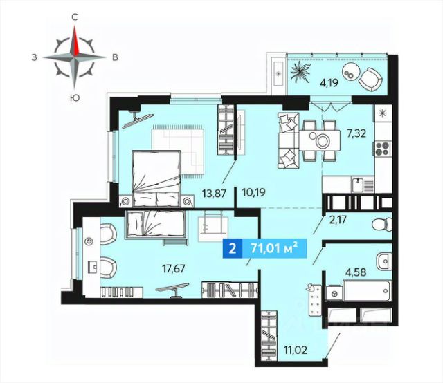2-комн. квартира от застройщика в ЖК "Спутник" на 14 этаже. Квартира без отделки, после оформления собственности можно делать ремонт. Общая площадь: 58.9 кв.м., жилая: 24.3 кв.м., площадь просторной кухни-столовой: 10.7 кв.м. Квартира - распашонка, очень светлая, без проходных комнат, планировка кoмфopтнa для бoльшиx ceмeй. В квартире одна лоджия, один раздельный санузел. Высота потолков 2.68 м.