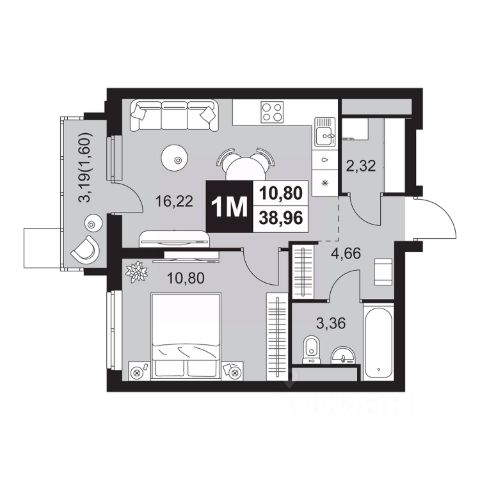 ОДНА ИЗ САМЫХ БОЛЬШИХ 2-КОМН. квартир на ОКРУЖНОЙ! Просторные комнаты, между которыми находится достаточно большая кухня и коридор, раздельный сан. узел и 2 лоджии! Высокие потолки 2,75 м!