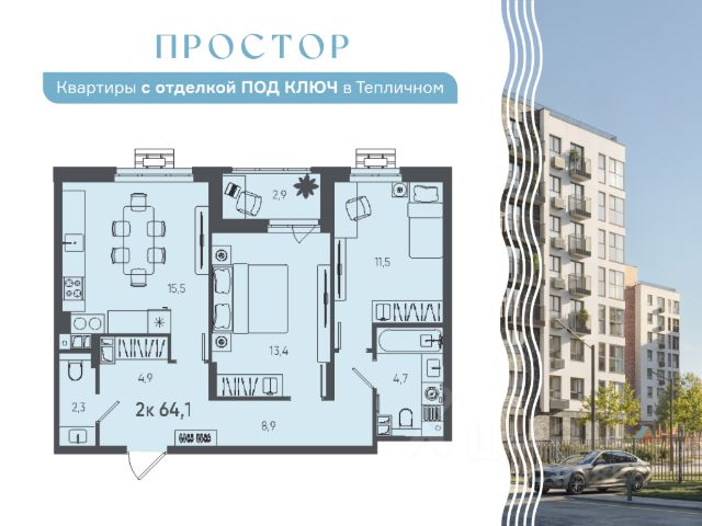 Просторная 2-комн. квартира с предчистовой отделкой в ЖК "Ньютон" на 2 этаже. Общая площадь: 86.36 кв.м., жилая: 29.14 кв.м., площадь просторной кухни-столовой: 30.81 кв.м. Комнаты изолированные, все окна выходят на одну сторону. В квартире одна лоджия, два совмещенных санузла. Высота потолков 3.1 м.