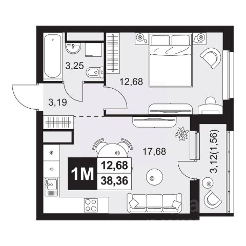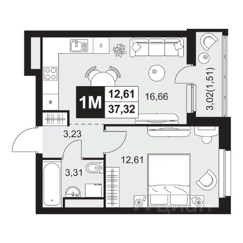 • ✅ Минимальная площадь: 37,3 м²