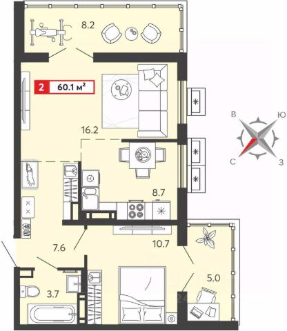 Двухкомнатная квартира с европланировкой и предчистовой отделкой в ЖК "Радужные дворы" на 11 этаже. Общая площадь: 44.4 кв.м., жилая: 25.2 кв.м., суммарная площадь гостиной-столовой с кухонной зоной: 23.7 кв.м. Европланировка, кухня-гостиная - идеальный вариант для тех, кто любит часто принимать гостей. Угловая квартира, очень светлая, естественная вентиляция при открытии окон. В квартире один совмещенный санузел. Высота потолков 2.68 м. Дом панельный, многоподъездный, переменной этажности, от 12 до 16 этажей. Квартира находится в 1-й секции высотой 16 этажей в корпусе 74. На этаже 6 квартир. В подъезде 1 пассажирский и 1 грузовой лифт. Окончание строительства - 4 квартал 2026 года. Оформление сделки по договору долевого участия. Условия покупки в октябре: 1. Рассрочка на 5 лет, на 3 года, с первым взносом от 10%, 2. Ипотека от 4,6%, 3. Трейд ин на недвижимость в Пензенской области, 4. Дисконт 3% для участников СВО и членов их семей. О ЖК "Радужные дворы": Современный квартал, который состоит из четырех жилых комплексов (Синий двор, Желтый, Оранжевый и Зеленый) с закрытыми дворами без машин. Архитектура и благоустройство каждого двора выполнены в уникальной цветовой гамме. Парковка организована по периметру домов. Расположение и транспортная доступность: Микрорайон Город Спутник, неподалеку река Сура, озеро и всего 15 минут на авто до центра Пензы. Инфраструктура: 2 собственных детских сада на 120 мест каждый, в шаговой доступности две школы, детская поликлиника, аптеки, кафе и магазины. Во дворах — детские игровые комплексы, спортивные площадки, зоны с тренажерами, беседки, перголы и зоны для барбекю. На первых этажах — колясочные комнаты. Благоустройство: Продуманные зоны отдыха для всех возрастов: территории с деревьями и кустарниками, подобранными под цветовую концепцию дворов. Фасады оборудованы корзинами для кондиционеров для сохранения эстетики. Безопасность: Закрытые дворы, круглосуточное видеонаблюдение на территории, в подъездах и лифтовых холлах. Отсутствие машин во дворах обеспечивает безопасность детей. #z6Z8CZ