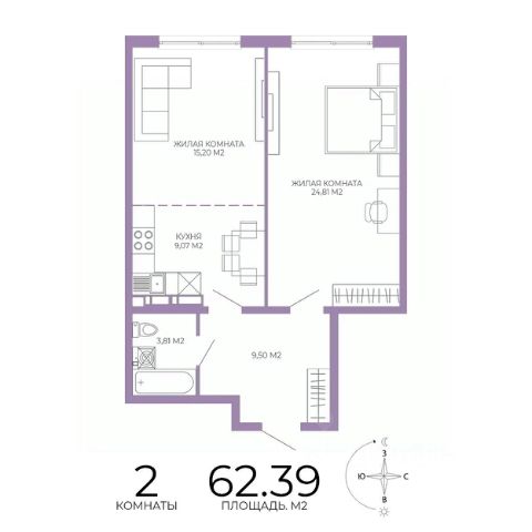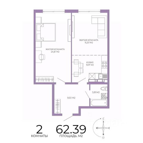 Продаётся 2-комнатная квартира в строящемся доме (2 этап (2 строение)), срок сдачи: III-кв. 2028, общей площадью 62.39 кв.м., на 9 этаже. Новый жилой комплекс "Чаадаев" от застройщика "Территория Жизни" расположен по адресу Россия, Пенза, улица Чаадаева, 60Б/2.