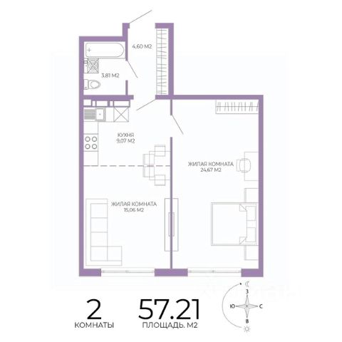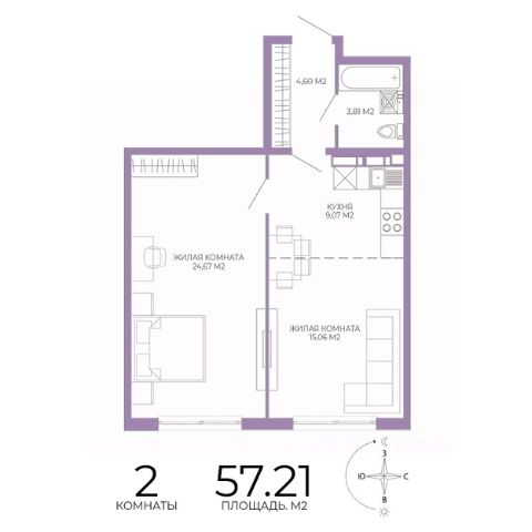 Продаётся 2-комнатная квартира в строящемся доме (1 этап (2 строение)), срок сдачи: III-кв. 2028, общей площадью 57.21 кв.м., на 3 этаже. Новый жилой комплекс "Чаадаев" от застройщика "Территория Жизни" расположен по адресу Россия, Пенза, улица Чаадаева, 60Б/2.