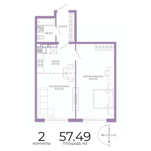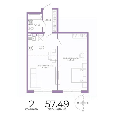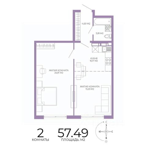 Продаётся 2-комнатная квартира в строящемся доме (1 этап (2 строение)), срок сдачи: III-кв. 2028, общей площадью 57.49 кв.м., на 9 этаже. Новый жилой комплекс "Чаадаев" от застройщика "Территория Жизни" расположен по адресу Россия, Пенза, улица Чаадаева, 60Б/2.