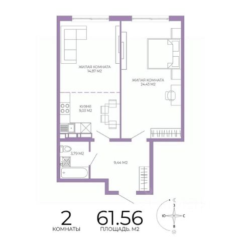 Продаётся 2-комнатная квартира в строящемся доме (2 этап (2 строение)), срок сдачи: III-кв. 2028, общей площадью 61.56 кв.м., на 2 этаже. Новый жилой комплекс "Чаадаев" от застройщика "Территория Жизни" расположен по адресу Россия, Пенза, улица Чаадаева, 60Б/2.