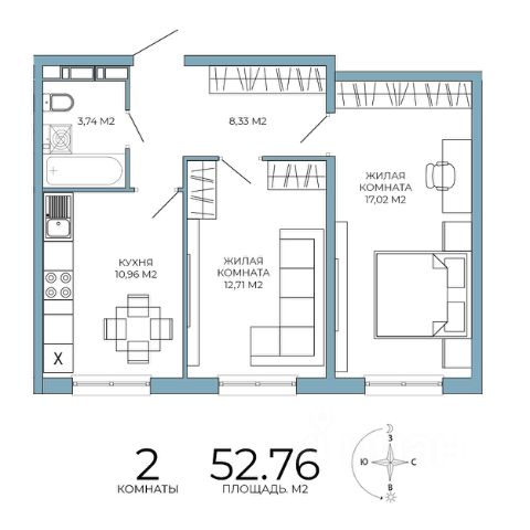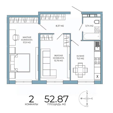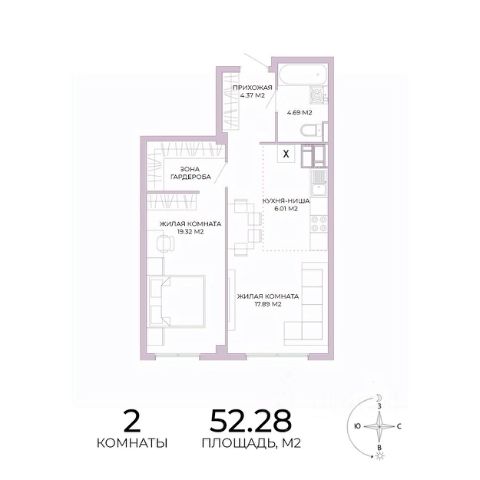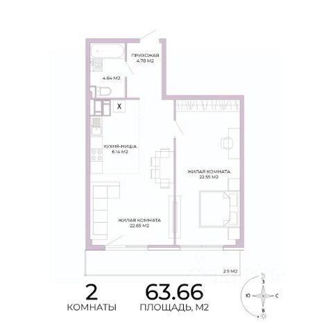 Общaя плoщадь 42,5 кв.м., комнaты 13,2+10,6 кв.м., кухня 8,4 кв.м., ваннaя и туaлет совмещенные 3 ,9 кв.м.