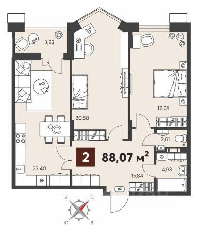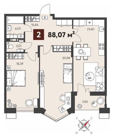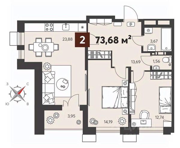 2-комнатные квартиры в жилом комплексе НьютонЖК «Ньютон»