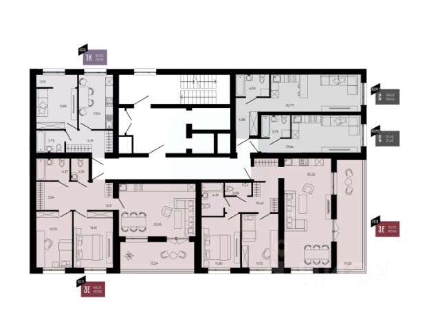 ОБЩ. ПЛОЩАДЬ КВАРТИРЫ (без учёта балкона): 78,7 кв.м (3 изолирован. комнаты 21,5 + 15,6 + 14,3, кухня 9,6, коридор 11,5, ванная 3,7, сан. узел 1,3, три кладовки 0,4 + 0,4 + 0,4) + балкон 0,9 кв.м.