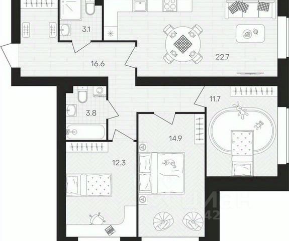 Евротрехкомнатная Квартира - "распашонка" 56,9м2. Квартира с двумя спальнями и кухней гостиной 20,9 м2 создана для семьи! Данная планировка объединяет всех: женщина готовит на кухне, пока вся семья, условно, смотрит ТВ в гостиной. Если в семье есть маленькие дети, то возможность контроля за детьми из зоны кухни возрастает. А если Вы любите принимать гостей — здесь есть большое пространство для ужинов с компанией. При желании Вы можете гостиную зону отделить от кухни рольставнями и появится дополнительное спальное место. В любом случае считается, что именно здесь в доме должна кипеть жизнь, а спальные комнаты, это пространство предназначенные для личного уединения и сна. Плюсом данной планировки, являются окна, выходящие на разные стороны света. кв 272 Этапы сделки: Одобрение ипотеки (при необходимости) Бронирование квартиры Подготовка ДДУ Согласование с банком ДДУ (при необходимости) Открытие счета эскроу Подписание КД (при необходимости) Подписание ДДУ Подписание соглашения на проведение отделочных работ Регистрация ДДУ в Росреестре Оплата Получение ключей *ДДУ-договор долевого участия *КД-кредитный договор
