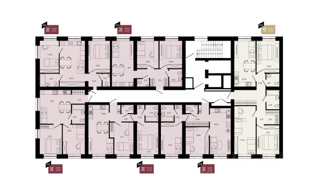 ОБЩ. ПЛОЩАДЬ КВАРТИРЫ (без учёта балкона): 78,7 кв.м (3 изолирован. комнаты 21,5 + 15,6 + 14,3, кухня 9,6, коридор 11,5, ванная 3,7, сан. узел 1,3, три кладовки 0,4 + 0,4 + 0,4) + балкон 0,9 кв.м.