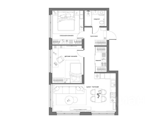 При продаже в квартире остается современный кухонный гарнитур со встроенной техникой: варочная панель,духовой шкаф, вытяжка,посудомоечная машина; кондиционер в комнате; мебель в ванной комнате,зеркало с инсталляцией, качественная сантехника; шкаф-купе в прихожей.