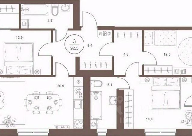 ПАРАМЕТРЫ: 98 м2 ( + 2 лоджии + тамбура 16 м2)