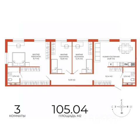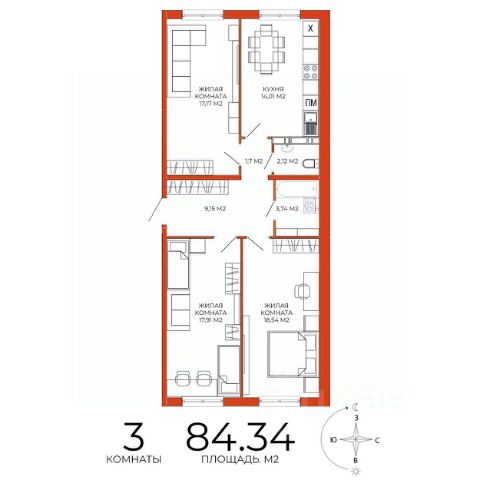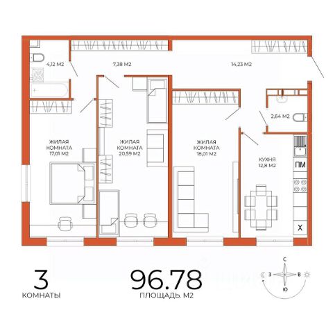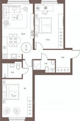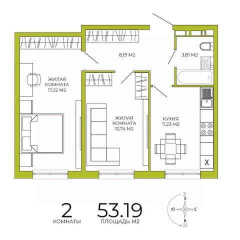 Арт. 122801664 В продаже полноценная 2к квартира с большой кухней-гостиной в ЖК бизнес-класса Lake Town! Сдача дома уже в этом году!