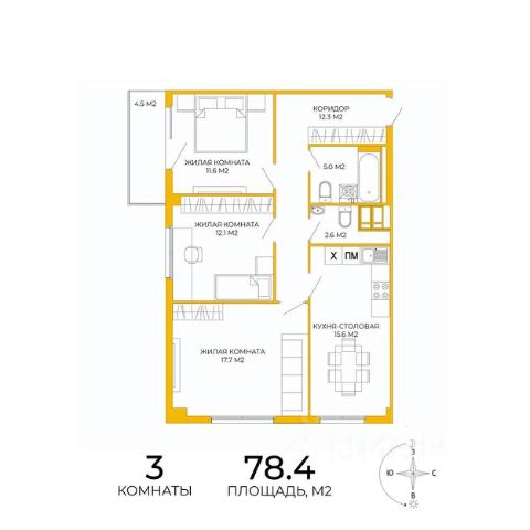 Жилая зона: мастер-спальня 11,6 кв.м с собственной гардеробной 2,4 кв.м. и своим санузлом 3 кв.м., вторая спальня 11,5 кв.м.