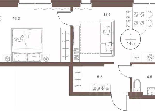 Арт. 122801664 В продаже полноценная 2к квартира с большой кухней-гостиной в ЖК бизнес-класса Lake Town! Сдача дома уже в этом году!