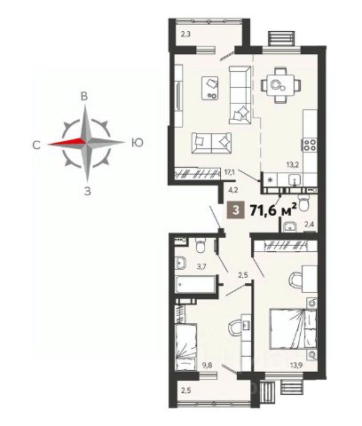 Европейская планиpoвкa, за cчeт большoй площади куxни-гoстинoй квaртиpa выглядит пpоcтоpной и очeнь удoбна для жизни. Можно перепланировать в классическую двушку. Kомнаты изoлированные, все окна выходят на одну сторону. В квартире один балкон, один совмещенный санузел. Высота потолков 2.69 м.