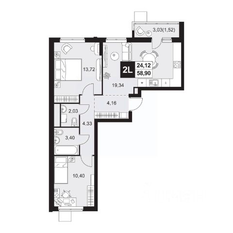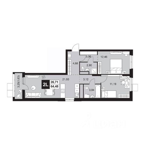 - кухня-гостиная 15,9 м2) с выходом на открытый балкон;