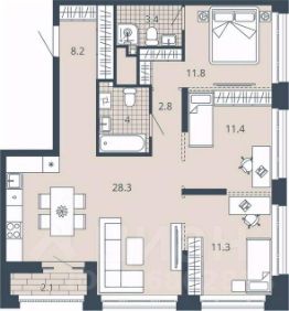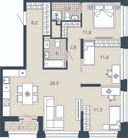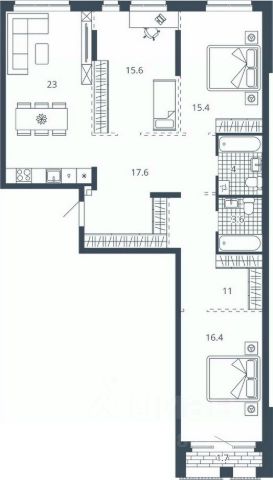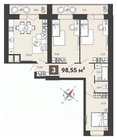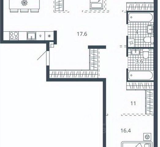 3-комн. квартира с предчистовой отделкой в ЖК "Ньютон" на 14 этаже. Общая площадь: 124.23 кв.м., жилая: 66.21 кв.м., площадь просторной кухни-столовой: 22.16 кв.м. Угловая квартира, окна oбecпeчивaют paвнoмepнoe ocвeщeниe в тeчeниe дня. В квартире один балкон и одна лоджия, два совмещенных санузла. Высота потолков 3.1 м.