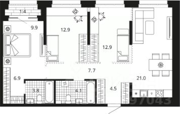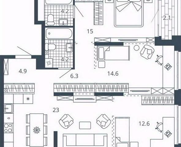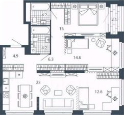 3-комн. квартира от застройщика с предчистовой отделкой в ЖК "Ньютон" на 4 этаже. Общая площадь: 124.23 кв.м., жилая: 66.21 кв.м., площадь просторной кухни-столовой: 22.16 кв.м. Угловая квартира, очень светлая, естественная вентиляция при открытии окон. В квартире один балкон и одна лоджия, два совмещенных санузла. Высота потолков 3.1 м.