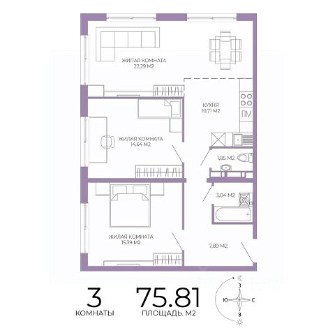 Квартира обладает отличной планировкой, что обеспечивает максимальное уединение и уют для каждого члена семьи.