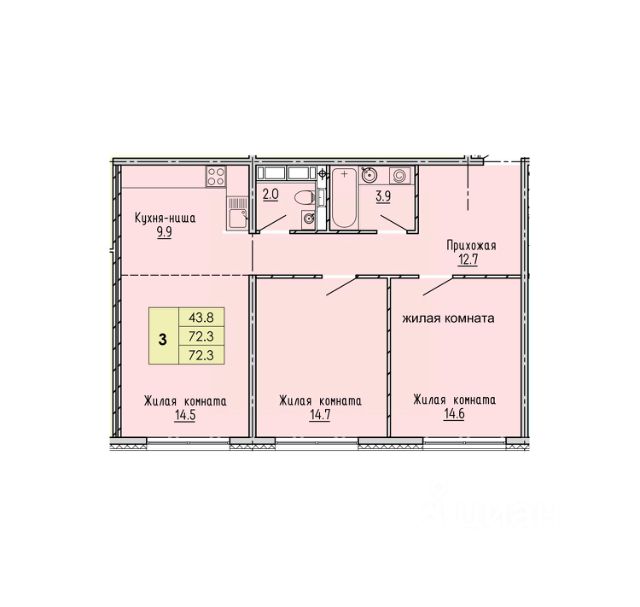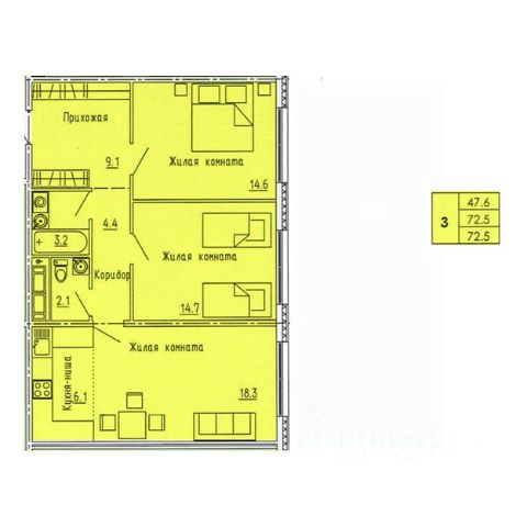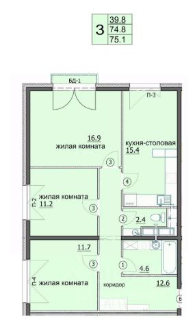 Комната 2, площадью 14,3 кв.м., подходят как для детских, так и для гостевых помещений.