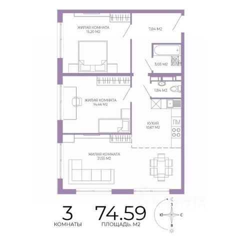 • ✅ Минимальная площадь: 58,8 м²