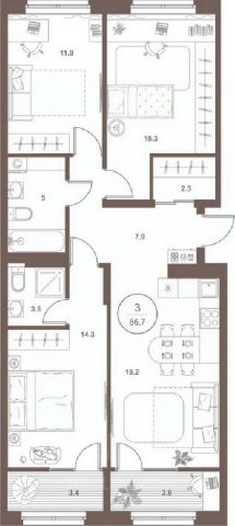 два с/у, в т.ч. один с/у большой совмещенный с ванной и душевой (13 ),