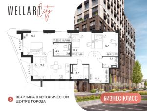 ОБЩ. ПЛОЩАДЬ КВАРТИРЫ (без учёта балкона): 78,7 кв.м (3 изолирован. комнаты 21,5 + 15,6 + 14,3, кухня 9,6, коридор 11,5, ванная 3,7, сан. узел 1,3, три кладовки 0,4 + 0,4 + 0,4) + балкон 0,9 кв.м.