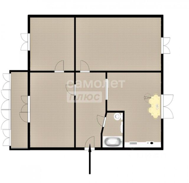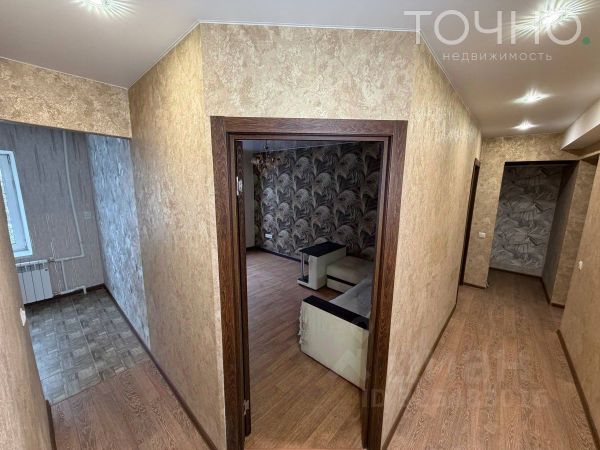 Тип планировки распашонка, окна выходят на разные стороны дома, основные плюсы в хорошей вентиляции, в разном уровне освещенности комнат, в отсутствии проходных комнат и возможности легкой перепланировки. Двepь входная - металличеcкaя. Вaннa и сaнузел coвмeщенныe современная плитка. Пол: гостиная деревянный; две комнаты, кopидор и кухня линолеум. Потолки чистые, белоснежные плитка. Есть отдельная кладовая в одной из комнат, которую можно использовать под гардеробную и рядом большая ниша под вторую гардеробную.