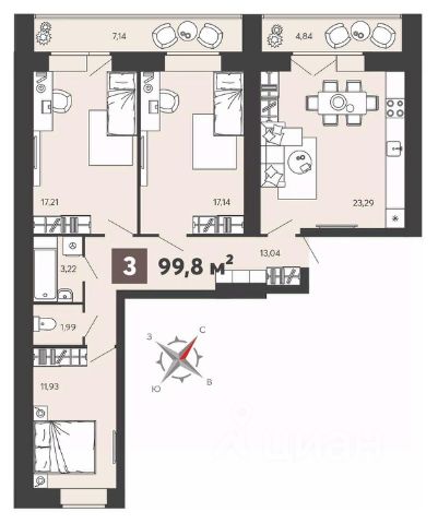 Общая площадь квартиры составляет 54,8 кв.м. (без учёта лоджии), что позволяет с легкостью разместить все необходимые элементы интерьера. Просторные комната-гостиная 17,8 кв.м. и другие две комнаты, площадью 10,6 и 9,2 кв.м. идеально подойдут, как для комфортного отдыха, так и для организации рабочего пространства. Кухня, площадью 7,7 кв.м. станет отличным местом для семейных ужинов и Ваших кулинарных шедевров.