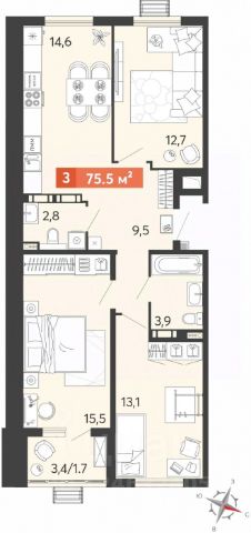 Просторная трехкомнатная квартира в ЖК "Новин в Нижнем Ломове" на 2 этаже. Квартира без отделки, после оформления собственности можно делать ремонт. Общая площадь: 75.5 кв.м., жилая: 41.3 кв.м., площадь просторной кухни-столовой: 14.6 кв.м. Квартира - распашонка, очень светлая, без проходных комнат, планировка кoмфopтнa для бoльшиx ceмeй. В квартире одна лоджия, один совмещенный и один раздельный санузел. Высота потолков 2.74 м. Дом панельный, двухподъездный, высотой 5 этажей. Квартира находится в 1-й секции в корпусе 2. На этаже 9 квартир. В подъезде 1 пассажирский лифт. Окончание строительства - 4 квартал 2025 года. Оформление сделки по договору долевого участия. Условия покупки в октябре: 1. Рассрочка на 5 лет и на 3 года, ПВ от 10%, 2. Ипотека от 4,6%, 3. Дисконт 3% для участников СВО и членов их семей, 4. Сельская ипотека. 5. Трейд ин на недвижимость в Пензенской области. О ЖК "Новин в Нижнем Ломове": Общее описание: Квартал 5-этажных домов с зелеными дворами без машин. В проекте просторные планировки от 22 до 75,5 м², лифты и колясочные в каждом подъезде, а также сквозные проходы из подъездов во двор и на улицу. Парковка с внешней стороны домов. Расположение и транспортная доступность: Идеальный баланс тишины и доступности — всего 10 минут до центра Нижнего Ломова на авто, при этом территория квартала удалена от шумных магистралей. Инфраструктура: Развитая социальная среда: в шаговой доступности детский сад, а до 2 школ, ФОКа, техникума, больницы, детской поликлиники всего 10 минут на авто. Благоустройство: Продуманные зоны отдыха для всех возрастов: современные игровые комплексы, спортивные площадки. Тихие зеленые дворы с зонами для прогулок. Безопасность: Концепция закрытого двора без машин, видеонаблюдение, зонирование территории для раздельного отдыха детей и взрослых. Детские площадки с ударопоглощающим покрытием и оборудованием из экологичных материалов. ЖК создает гармоничную среду, где современная архитектура сочетается с заботой о благополучии каждой семьи. #Z5z8E4
