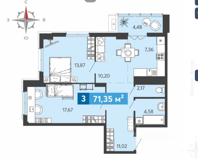 ЭТАЖ/ЭТАЖНОСТЬ: 3-ий эт. 16-ти этажн. дома.