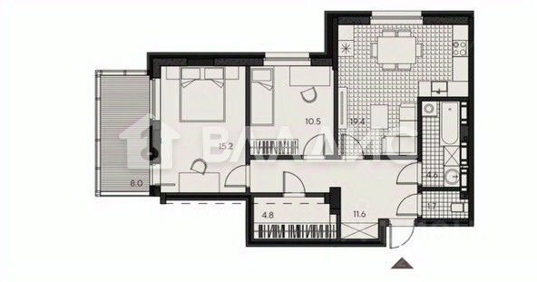 Общая площадь с лоджией — 82,6 м², продуманная планировка: