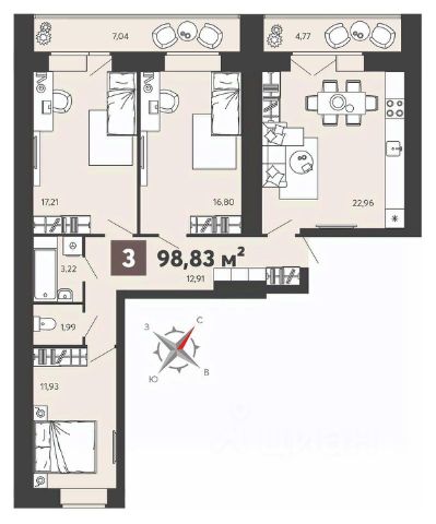 * Износостойкий ламинат на полу, пастельные обои на стенах, натяжные потолки с точечными светильниками, керамогранит в ванной и прихожей, панорамное остекление лоджии, установленная сантехника - все готово для комфортного проживания.