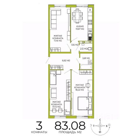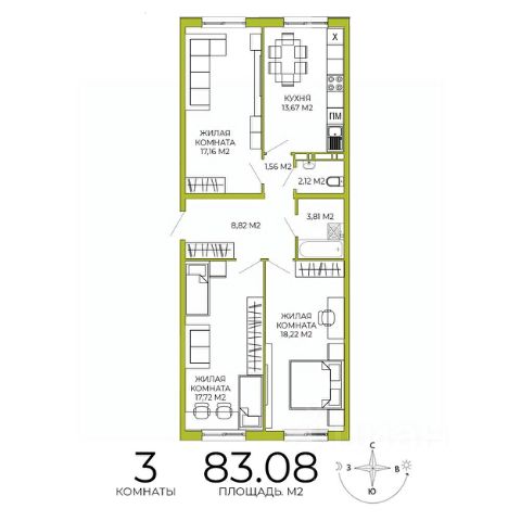 Продаётся 3-комнатная квартира в строящемся доме (Побочинская,60), срок сдачи: IV-кв. 2027, общей площадью 75.54 кв.м., на 4 этаже. Дизайнерская отделка. В "Лугометрии" мы объединили общение с природой и комфорт городских условий. Название проекта родилось из идеального баланса между цветущими лугами и геометрией жилого комплекса. Этот район - настоящая экологическая сокровищница нашего города. Здесь растут редкие растения, занесенные в Красную книгу.Для строительства мы выбрали Октябрьский район, Арбеково: этот район активно развивается и считается одним из самых перспективных и приоритетных для развития Пензы. Тут проходят основные магистрали города, установлено самое большое количество видеокамер в Пензе, есть более десятка торговых центров и других социальных объектов.