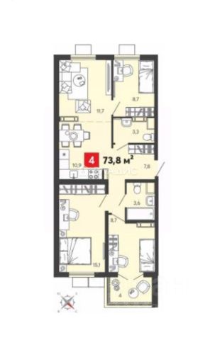 - кухня-гостиная 15,9 м2) с выходом на открытый балкон;