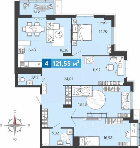Продаётся 4-комнатная квартира в строящемся доме (3 этап (Астерион)), срок сдачи: IV-кв. 2026, общей площадью 121 кв.м., на 3 этаже. ЖК "Созвездие" - это жилой комплекс комфорт-класса из шести домов (17, 25 и 30 этажей), расположенный на берегу озера и отвечающий последним технологическим стандартам.Двор ЖК "Созвездие" спроектирован закрытым, здесь будут космические цветы и беседки в виде звездных систем, необычные детские площадки и широкие дорожки в окружении зелени, зоны спорта и солярия.На территорию ЖК можно будет попасть через единую входную группу, где на первом этаже появятся пункт охраны, колясочные, установят почтовые ящики, обустроят комфортную зону для встречи гостей. На втором - соседский центр площадью 500 кв. м с детской и лаундж-зоной, игровым пространством и даже уютным кухонным уголком. В холлах, согласно авторскому проекту, будет воссоздана атмосфера звездного неба и бескрайнего космоса. Для комфорта жильцов мы обустроим в холлах мягкую зону, лапомойки и колясочные, сделаем вход в подъезды без ступеней. Установим скоростные лифты, которые соединят подземный паркинг с жилыми этажами. А верхние этажи домов будут полностью из стекла.Квартиры спроектированы с возможностью свободной планировки. Для каждой предусмотрен проект возможного планировочного решения, созданного с учетом индивидуальных характеристик и подходов к зонированию жилого пространства. Квартиры будут сдаваться со стяжкой пола, разводкой и шумоизоляцией. Также в них установят встроенные радиаторы, противопожарные датчики, импульсные приборы учета, приточные клапаны, входную металлическую дверь. В ЖК будет внедрена система "Умный дом".Подземный паркинг оборудуют автоматическими въездными воротами, системами контроля доступа, обзорным видеонаблюдением, системами пожарной сигнализации и дымоудаления. На первых этажах комплекса спроектированы места для бизнеса с витражными окнами и высокими потолками. Офисные помещения, магазины и кафе разместятся на площади около 15 000 кв. м.Таким образом, жители ЖК "Созвездие" получат комфортное, технологичное жилье в окружении природы. Во дворе созданы условия для безопасного семейного отдыха и занятий спортом. Рядом с ЖК - живописное озеро, благоустроенная набережная со светомузыкальным фонтаном, спортивная тропа здоровья, пляж и все необходимые объекты социальной инфраструктуры: детсады и школа, бассейн и спортивно-развлекательный центр, поликлиника и почта, кафе и магазины.