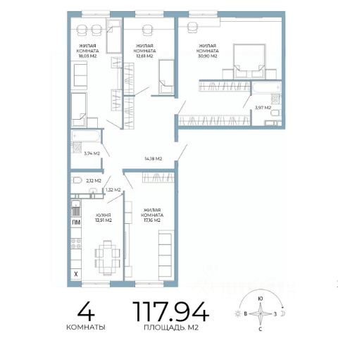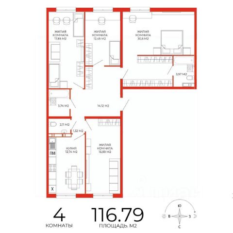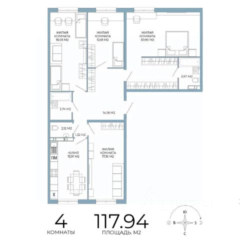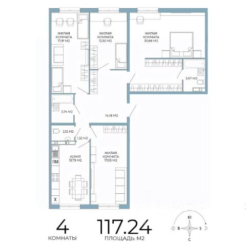 Общая площадь 82,1 кв.м. Три жилые комнаты: две спальни по 11,9 кв.м. и мастер-спальня 13 кв.м. плюс гардеробная и собственный санузел. Просторная кухня-гостиная 24,4 кв.м., а также просторная прихожая, гардеробная, постирочная и общий санузел С ОКНОМ 3,9 кв.м. Идеальный вариант для семьи и для тех, кто ценит продуманную планировку и простор.