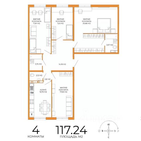 Арт. 127259310 В продаже евро-4к квартира по ул. 65-летия Победы, 26 (ЖК Апгрейд) с качественным дизайнерским ремонтом, мебелью и техникой "заходи и живи"!