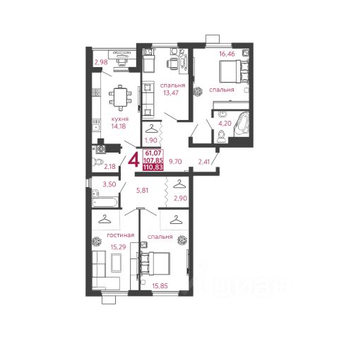 • ✓ В базе Циан 3 4-комнатных квартир в ЖК Илмари в Пензе